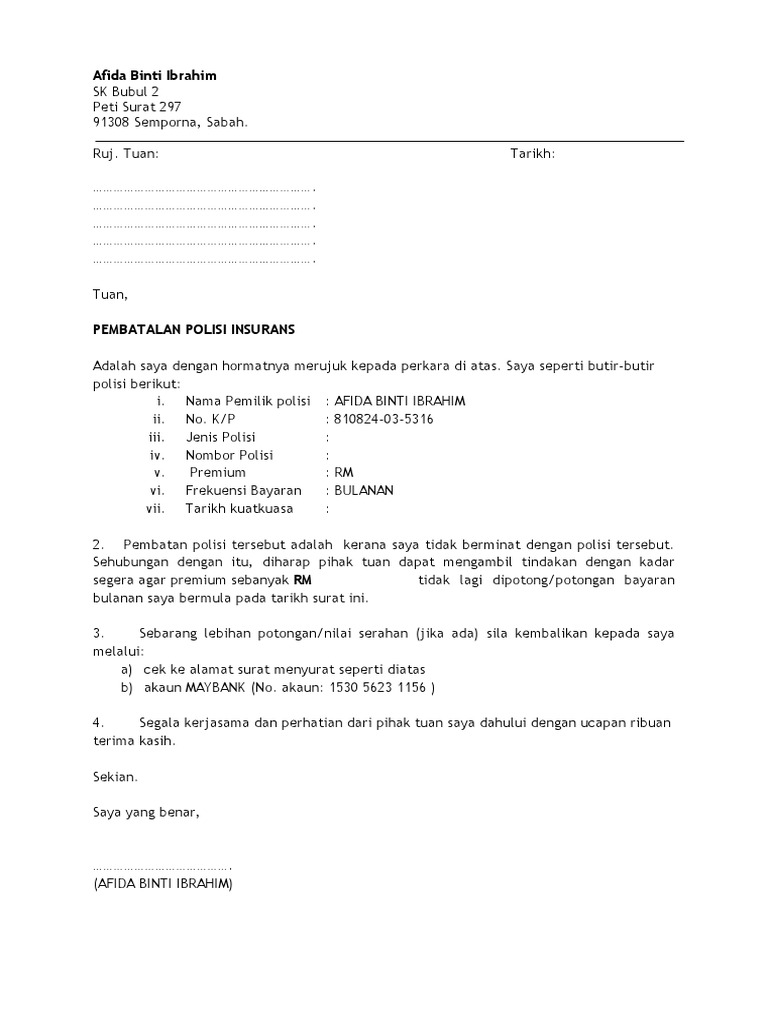 Surat Pembatalan Polisi Insurans Pdf